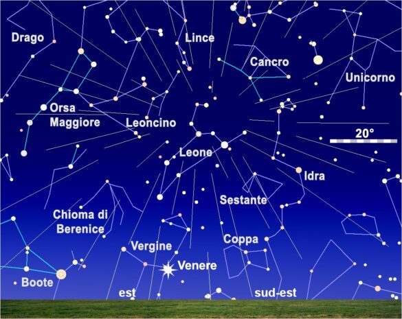 Il radiante delle Leonidi risulta visibile dalla mezzanotte locale fino alle prime luci dell’alba e le osservazioni potranno essere effettuate in condizioni ottimali grazie all’assenza della Luna, che la notte del massimo tramonta prima della mezzanotte.