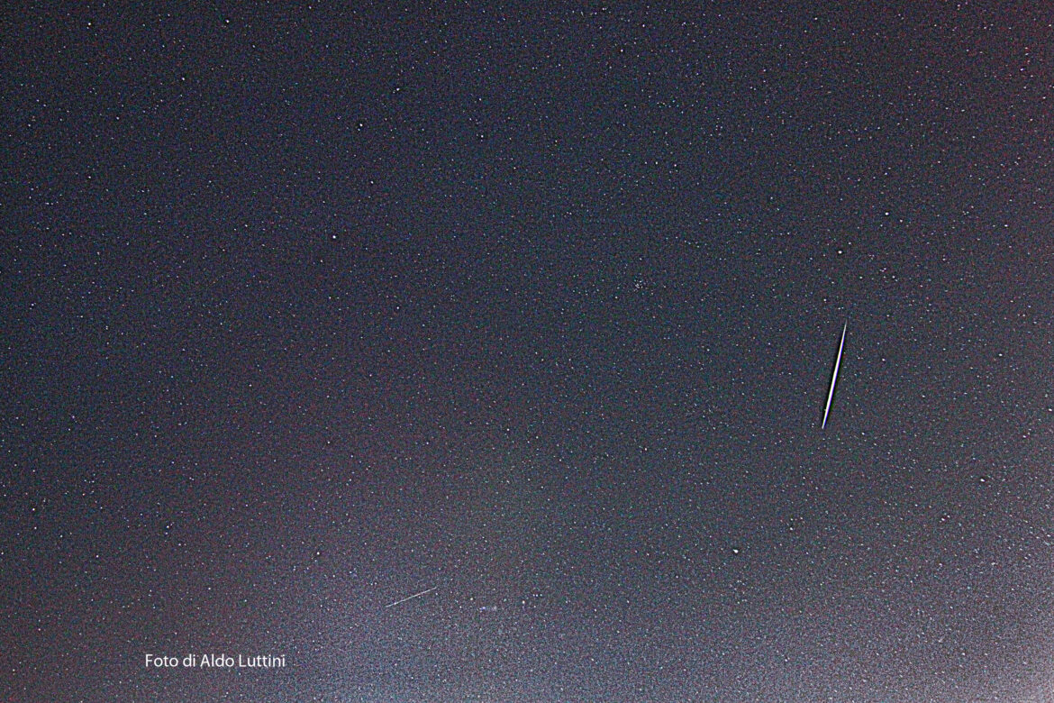 Foto di Aldo Luttini: Meteora geminide sulla costellazione dei gemelli