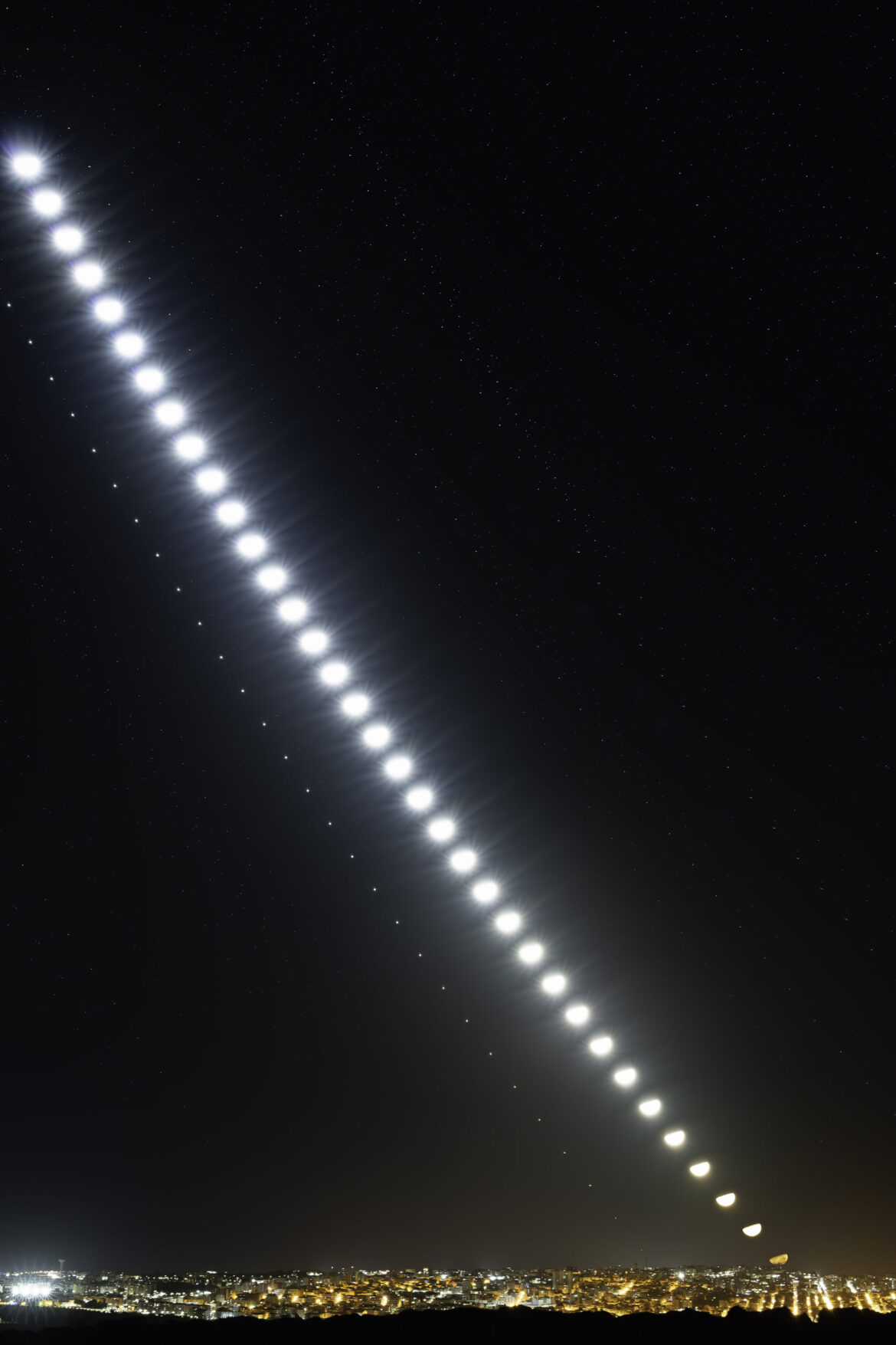 Foto di GIANNI TUMINO: LUNA E GIOVE: SEQUENZA DI TRAMONTO SU RAGUSA