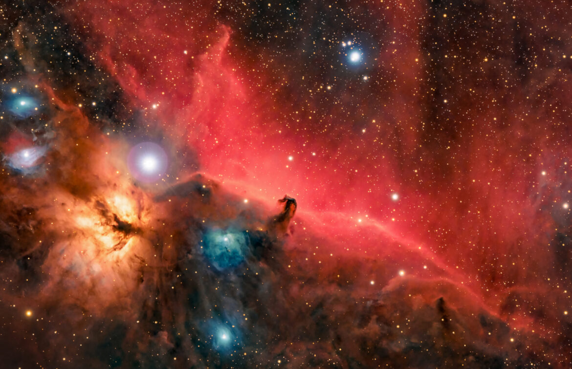 Note: Scatto realizzato sommando 48×300″ light in banda larga e 108×300″ in multibanda stretta, per un totale di 13 ore di esposizione, con relativi Dark, Flat, Darkflat e Bias. Sensore a -20° Gain 1600 Offset 7. SETUP: SkyWatcher 80ED spianato, Montatura EQ6R, sistema autoguida Svbony 60/240mm e camera QHYII5LM. Camera di ripresa QHY294C. Filtri Optolong L-pro, L-enhance, L-extreme. SOFTWARE: MaximDL, N.I.N.A, DSS, Pixisight, PS con Astropanel.