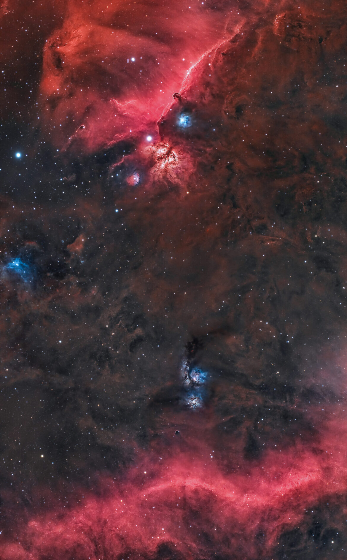 Chiude la meravigliosa immagine parte dell’ Anello di Barnard, una vasta nebulosa ad emissione originata dall’esplosione di una supernova avvenuta circa 2 milioni di anni fa che avvolge la costellazione di Orione.