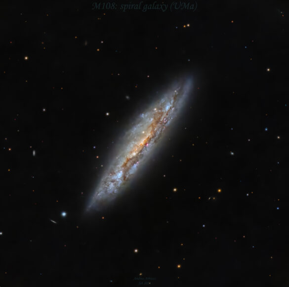 La galassia “Tavola da Surf” (nota anche come M 108) è una galassia a spirale a circa 45 milioni di anni luce, nella costellazione dell’Orsa Maggiore.