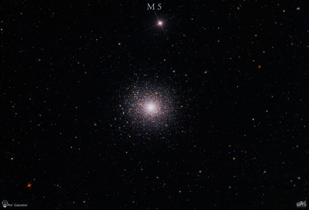 Foto di giacomo pro’: M5 Luogo della ripresa TORRICELLA (TA) Data della ripresa 27/04/2024 Telescopio Sky-Watcher Quattro 200P Montatura Skywatcher Eq 6-r Pro Camera di ripresa ZWO ASI 294 MC PRO
