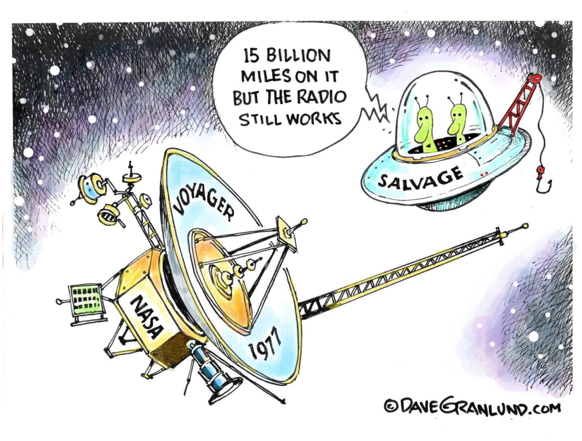 La vostra memoria di 70 kilobyte sta dando pacche sulle spalle a quei giovanotti cibernetici del giorno d’oggi, dimostrando ancora una volta che anche con capacità informatiche modeste (per il giorno d’oggi) è possibile avere risultati veramente stupefacenti. Il vostro segnale inviato spendendo 22 Watt della vostra potenza ha aperto un’altra finestra su una strada ancora sconosciuta, che voi state percorrendo senza paura e con immenso spirito di avventura. A quasi 25 miliardi di km da casa, trasmettendo informazioni a 160 bit al secondo.