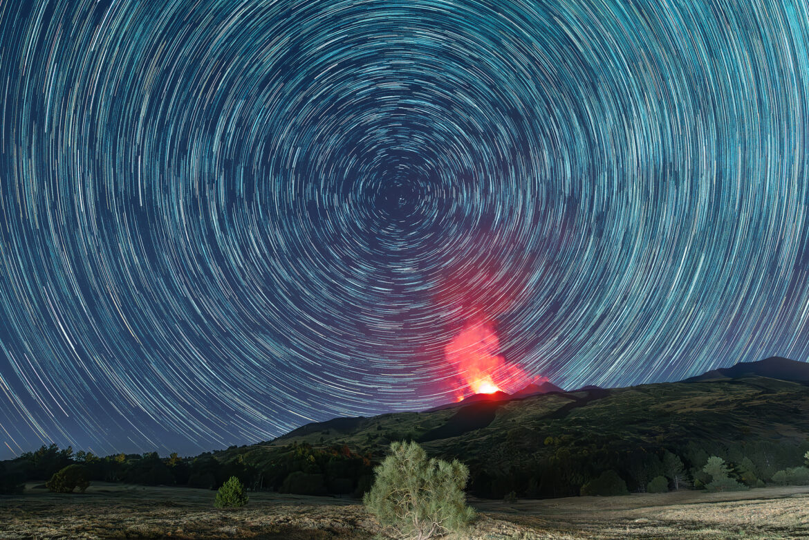 Foto di GIANNI TUMINO: STAR TRAILS SULL’ERUZIONE