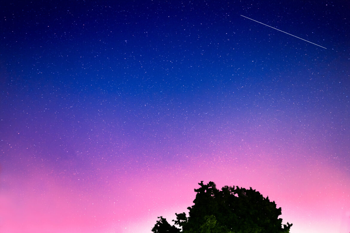 UNA SINGOLA POSA DA 3 MINUTI PER L’AURORA BOREALE UNITA CON UNA SINGOLA POSA DA 30 SECONDI PER LA ISS E LA QUERCIA IN PRIMO PIANO