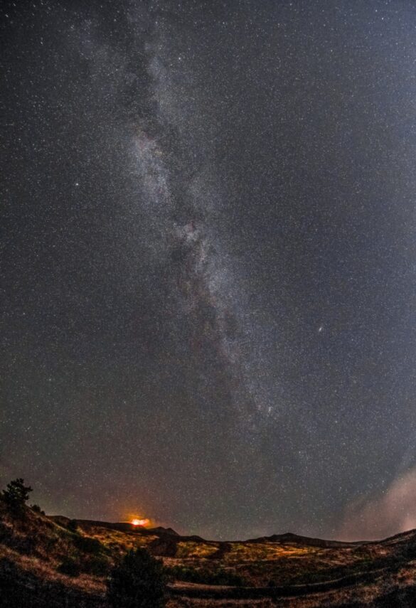il secondo scatto fotografico riprende la via Lattea in tutta la sua bellezza in verticale insieme al vulcano Etna in eruzione