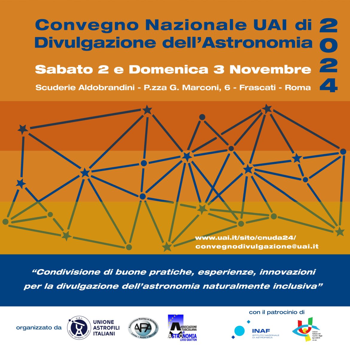 Sono ufficialmente aperte le iscrizioni al Convegno nazionale di divulgazione dell’Astronomia in programma da sabato 2 a domenica 3 novembre 2024 presso le Scuderie Aldobrandini di Frascati (RM). L’appuntamento vuole aprire spazi di confronto e riflessione sui metodi e sugli strumenti della divulgazione astronomica e mettere a fuoco le best practice. Inserito nel calendario astrofilo 2024 che colleziona gli eventi di grande interesse per gli appassionati di Astronomia, il Convegno è organizzato dal Programma nazionale “Divulgazione” dall’Unione Astrofili Italiani (UAI) con la collaborazione dell’Associazione Pontina di Astronomia (APA) e dell’Associazione Tuscolana di Astronomia (ATA).