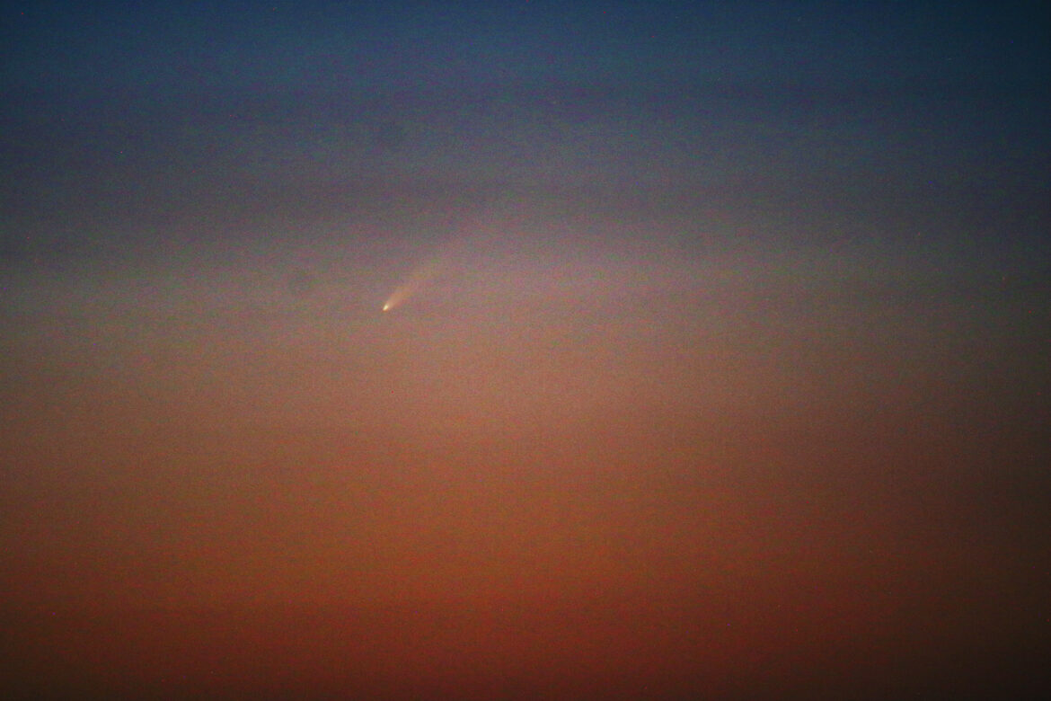 La cometa risulta un oggetto difficile a causa della bassa altezza sull’orizzonte e il chiarore delle luci dell’alba. Al momento non sono riuscita a vederla a occhio nudo.