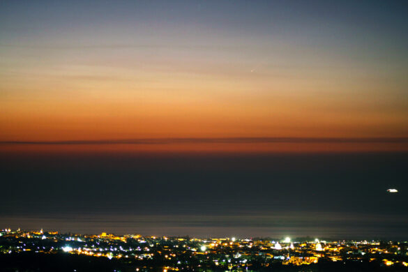 La cometa risulta un oggetto difficile a causa della bassa altezza sull’orizzonte e il chiarore delle luci dell’alba. Al momento non sono riuscita a vederla a occhio nudo.
