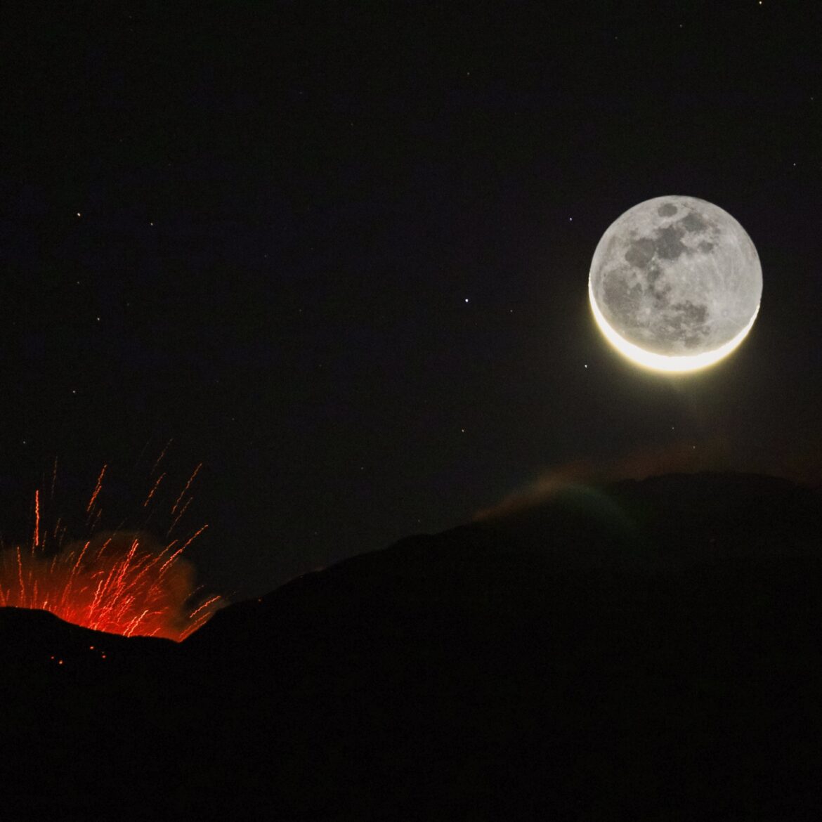 Mi sono recato in uno dei posti più belli dell’Etna , trovando questo meraviglioso spettacolo all’improvviso con un’eruzione che si e verificata solo in quel preciso momento insieme alla luna gigantesca vicino all’eruzione dell’Etna.