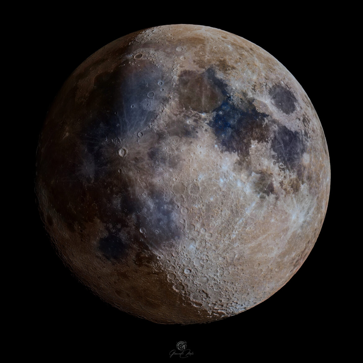 Tutte le immagini, riprese anche in fasi lunari differenti, sono state amalgamate e adattate in modo da dare un po’ di “tridimensionalità” alla luna.