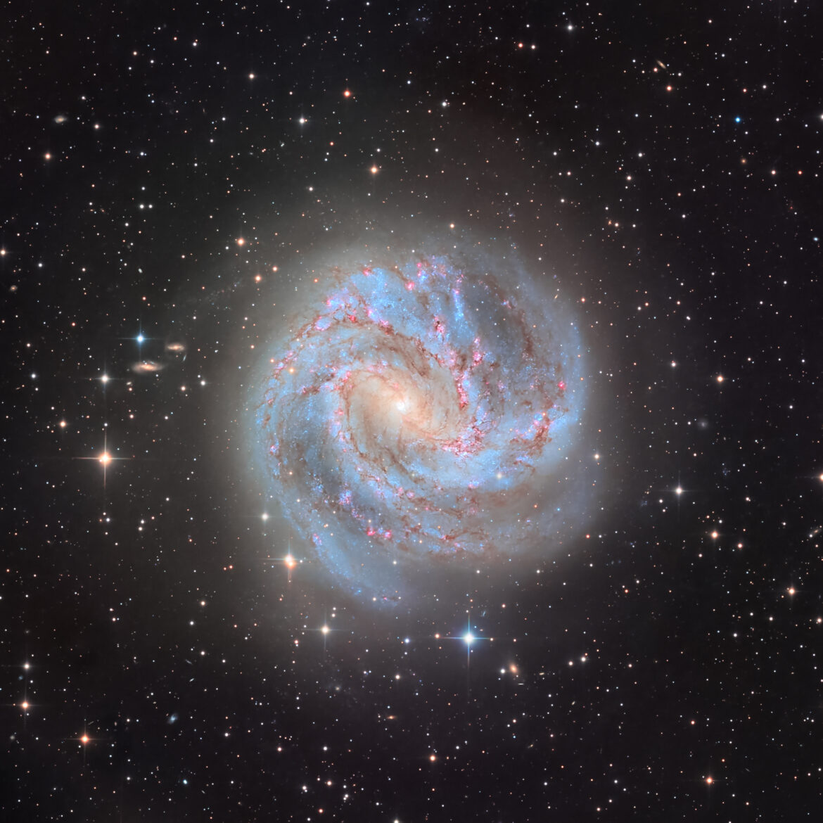 Messier 83 (conosciuta anche come M83, NGC 5236 o Galassia Girandola del Sud) è una galassia a spirale barrata situata nella costellazione meridionale dell’Idra a una distanza di 15,2 milioni di anni luce dalla Terra. Situata 30 gradi a sud dell’equatore celeste, Messier 83 è la galassia più meridionale elencata nel catalogo di Messier, il che la rende uno degli oggetti di Messier più difficili per gli osservatori settentrionali perché non sorge mai molto in alto sopra l’orizzonte.