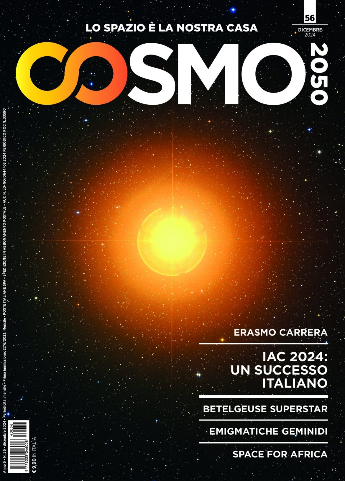 Chissà però che non siano gli eventi meno prevedibili a farci sobbalzare, come è capitato quest’anno. Anche per buona parte del 2025 il Sole sarà ancora al massimo del suo ciclo undecennale di attività e magari assisteremo ad altre sue manifestazioni eccezionali. E stiamo sempre aspettando, ormai da 420 anni, di osservare una supernova nella nostra Galassia. In questo numero, Giuseppe Donatiello ci parla della variabilità di Betelgeuse, la supergigante rossa che rappresenta la “spalla” del mitologico cacciatore Orione. Sarà di buon auspicio per un evento altrettanto imprevedibile, come lo sono state le aurore del 2024? Questo senza augurare a Betelgeuse di esplodere in tempi così brevi, ma fra le centinaia di miliardi di stelle che popolano la Via Lattea…