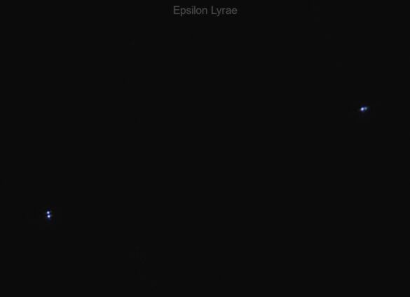 Epsilon Lyrae è un sistema stellare che si trova nella costellazione della Lira, non lontano dalla stella Vega e ben osservabile durante le notti estive. La sua distanza dalla Terra è di circa 160 anni luce e, grazie a un buon binocolo, si può facilmente separare in due componenti distanti circa 3 primi d’arco e chiamate Epsilon 1 e Epsilon 2. Al telescopio, a circa 100x, si scopre che ognuna di queste è a sua volta una stella doppia e per questo motivo il sistema viene chiamato anche doppia doppia.