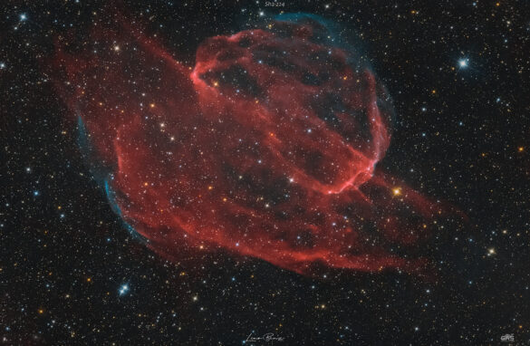 Sh2-224 è un resto di supernova visibile nella costellazione boreale dell’Auriga. Si individua 3,5° a SSE della brillante stella Capella, l’astro dominante della costellazione; è formato da due tenui filamenti nebulosi. La distanza della struttura è stimata sui 14700 anni luce dal sistema solare, in una regione periferica del Braccio di Perseo. G.A.S. GRUPPO ASTROFILI DEL SALENTO