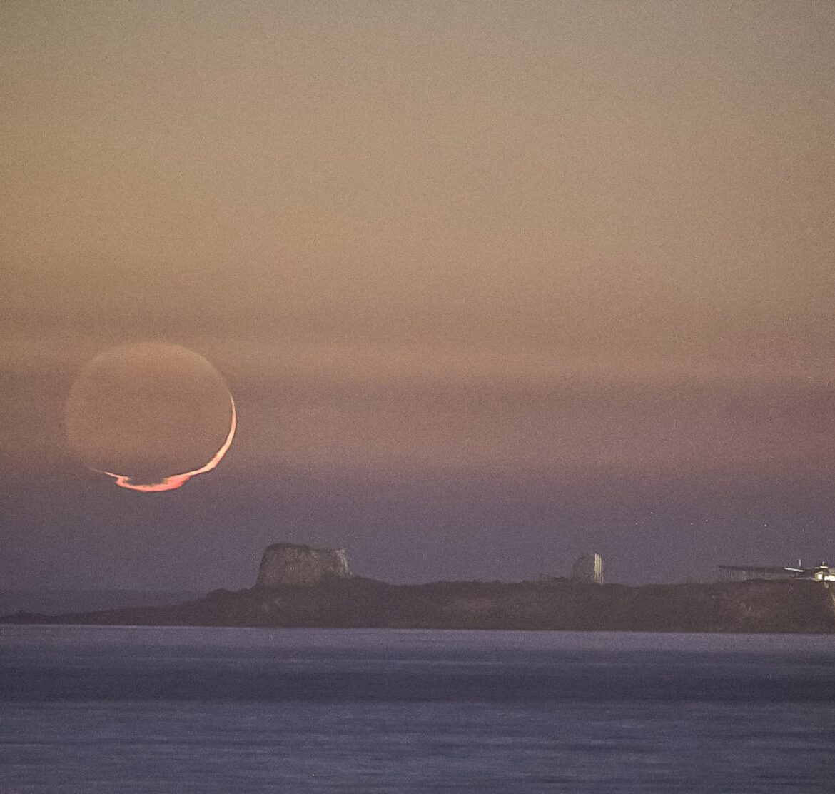 Foto di GIOVANNI PASSALACQUA: Miraggio inferiore, luna che tramonta sulla torre antica vigliena di Punta braccetto Sicilia