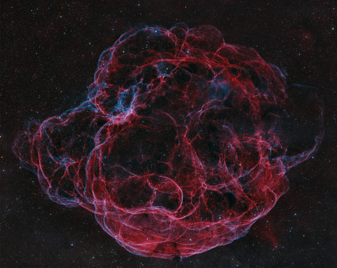 Simeis 147 (Sh2-240) o meglio conosciuta come “Spaghetti” è un celebre resto di supernova nella costellazione del Toro. Mosaico di 2 pannelli.