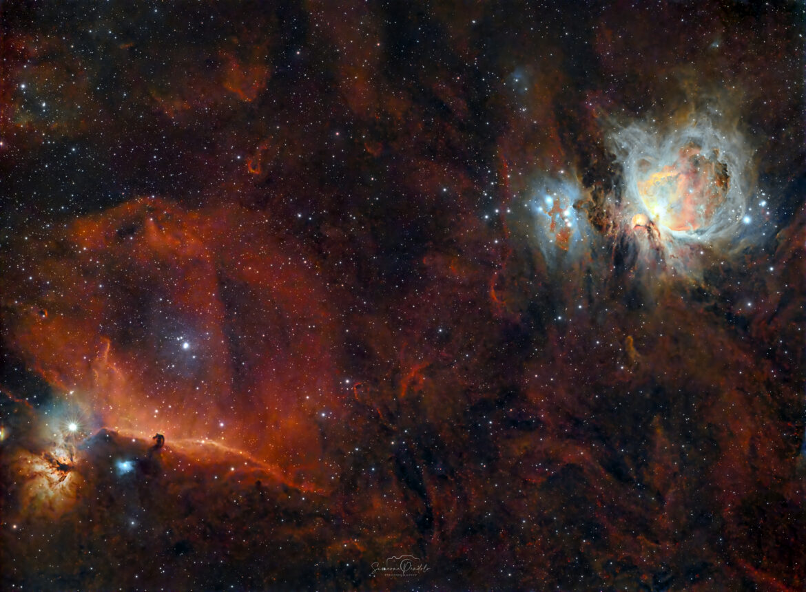 Foto di Simeone Pendolo: Nebulosa Testa di Cavallo IC434, Nebulosa Fiamma NGC 2024, Nebulosa di Orione M42