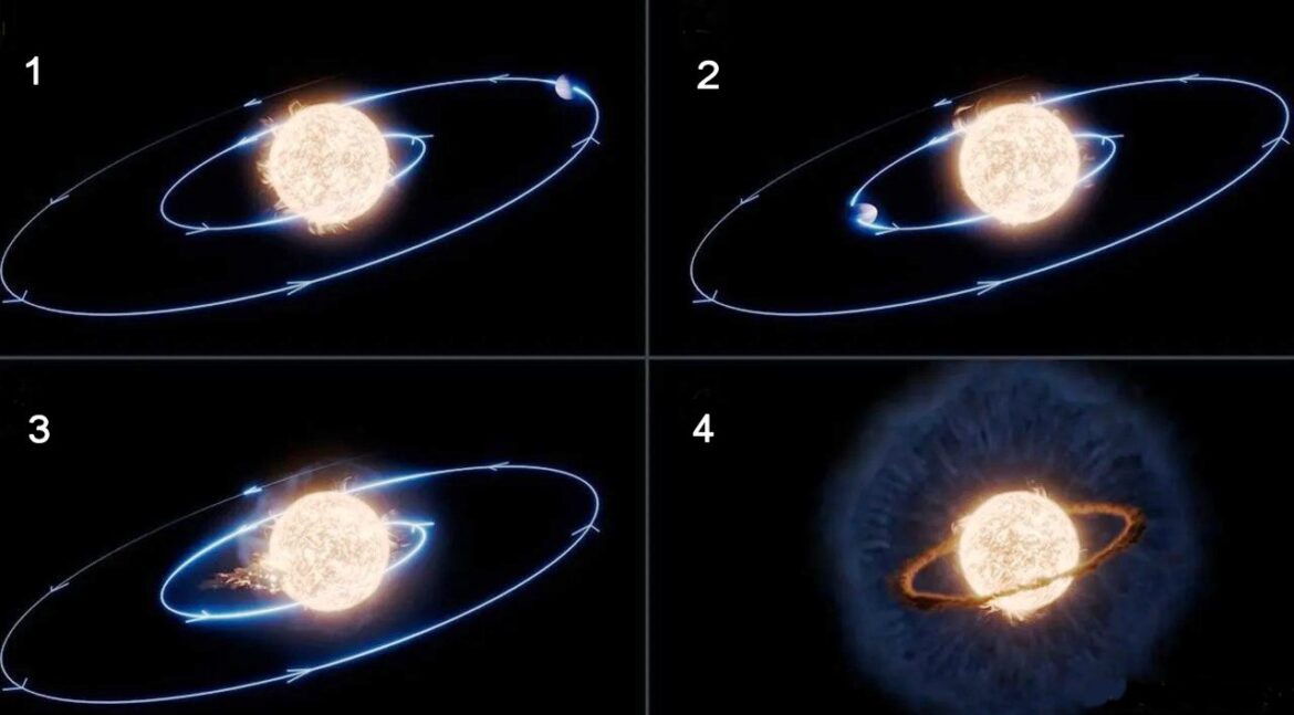 L’evento di fagocitazione planetaria è stato individuato per la prima volta nel 2020, come un improvviso lampo di luce visibile, grazie allo Zwicky Transient Facility, in California. Ma già un anno prima la stella aveva già mostrato un aumento di luminosità nell’infrarosso, rilevato dal telescopio Neowise della Nasa, un segnale che suggeriva la presenza di polvere nello spazio circostante.