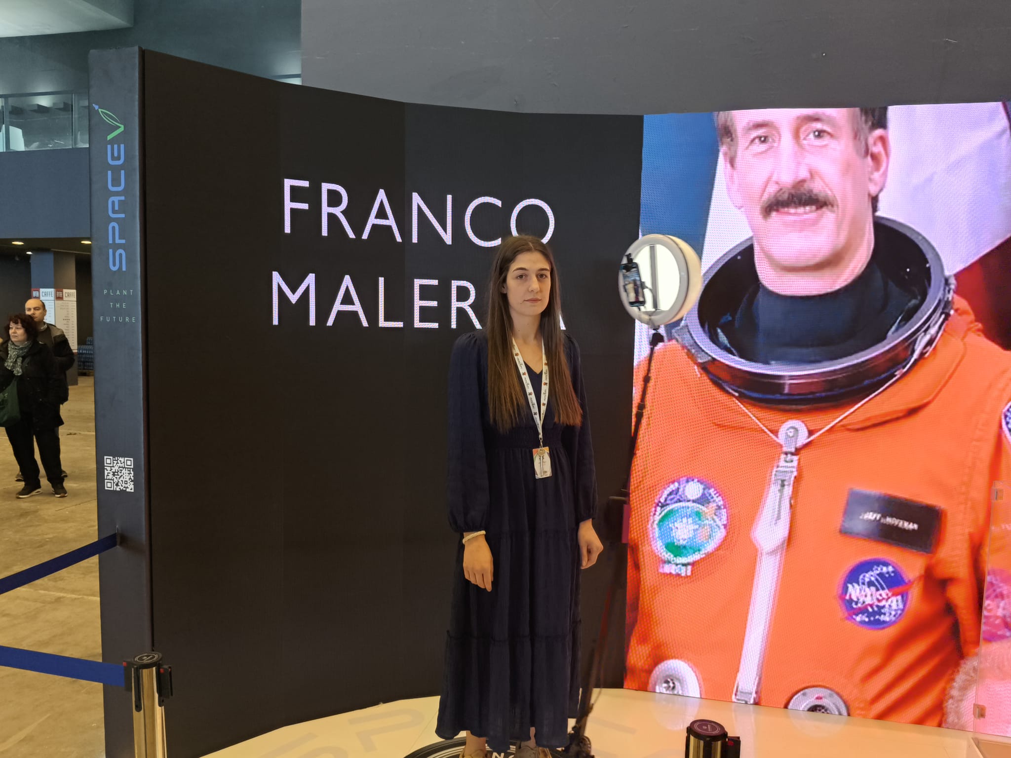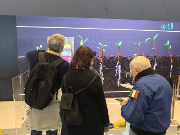 Naturalmente io penso che la gente venga a Euroflora per le piante e per i fiori però sono attratti dal nostro stand perché evidentemente è una curiosità una cosa inattesa, inattesa poi fino a un certo punto perché ormai di spazio si parla parecchio e quindi c’è un collegamento tra quello che si è visto a Leonardo o a Focus e ciò che guarda caso si può anche toccare con mano qui a Euroflora.