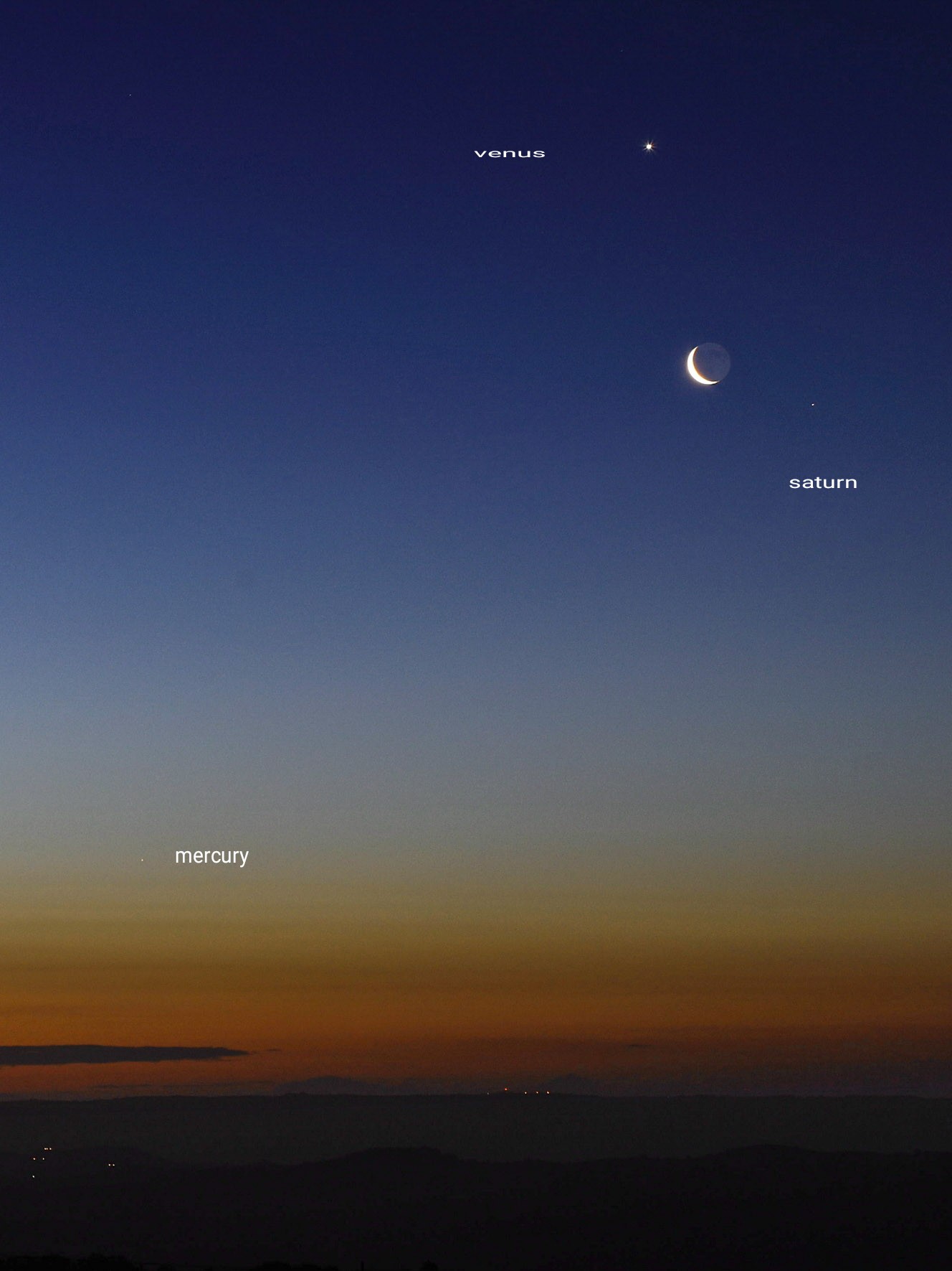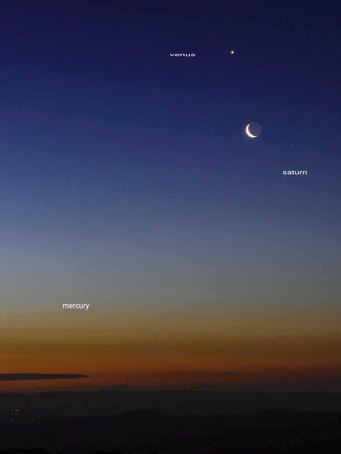 Foto di GIOVANNI PASSALACQUA: Secondo scatto dettagliato nuova congiunzione quartetto Venere-Luna-Saturno-Mercurio basso a sinistra