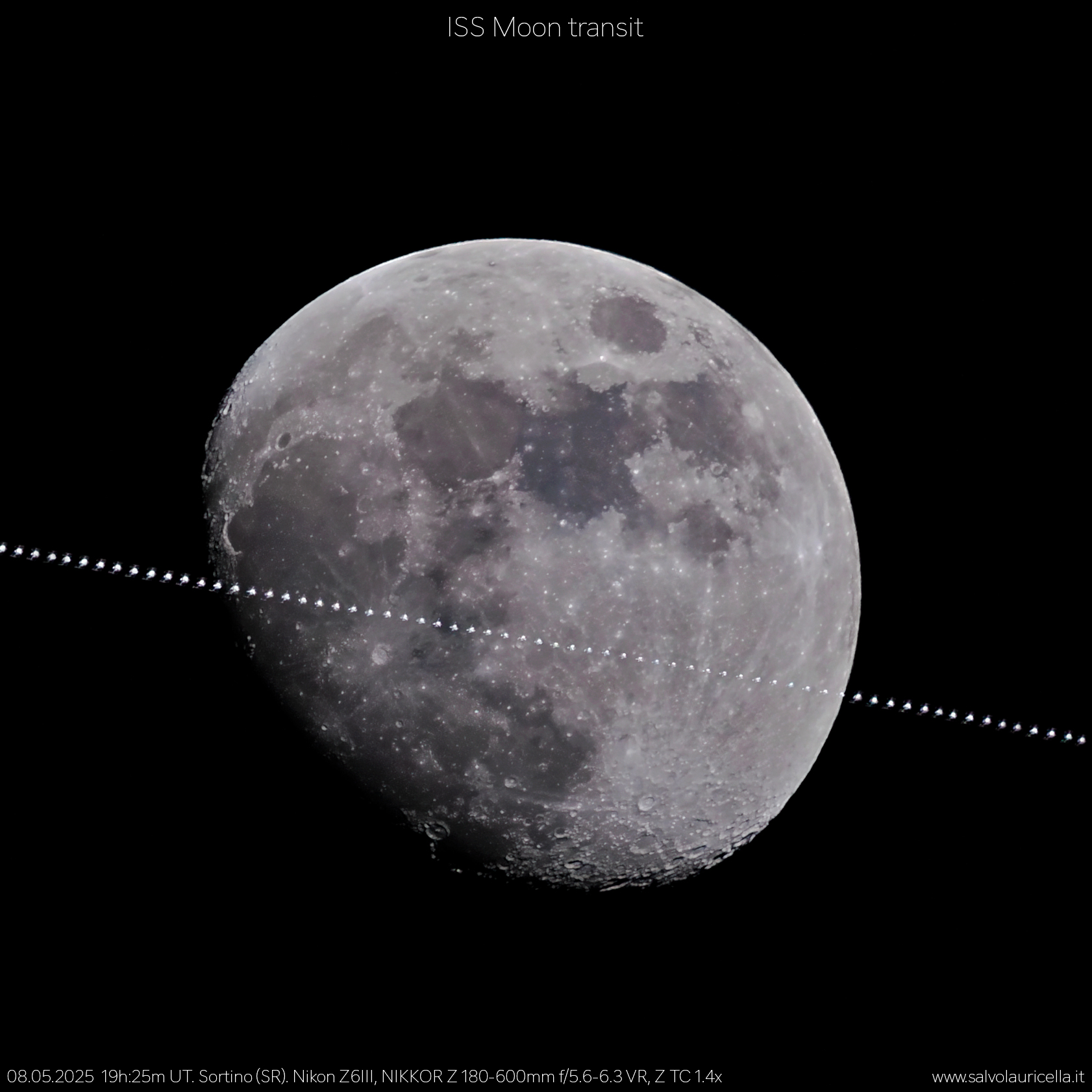 Foto di Salvo Lauricella: La Stazione Spaziale Internazionale transita sulla Luna