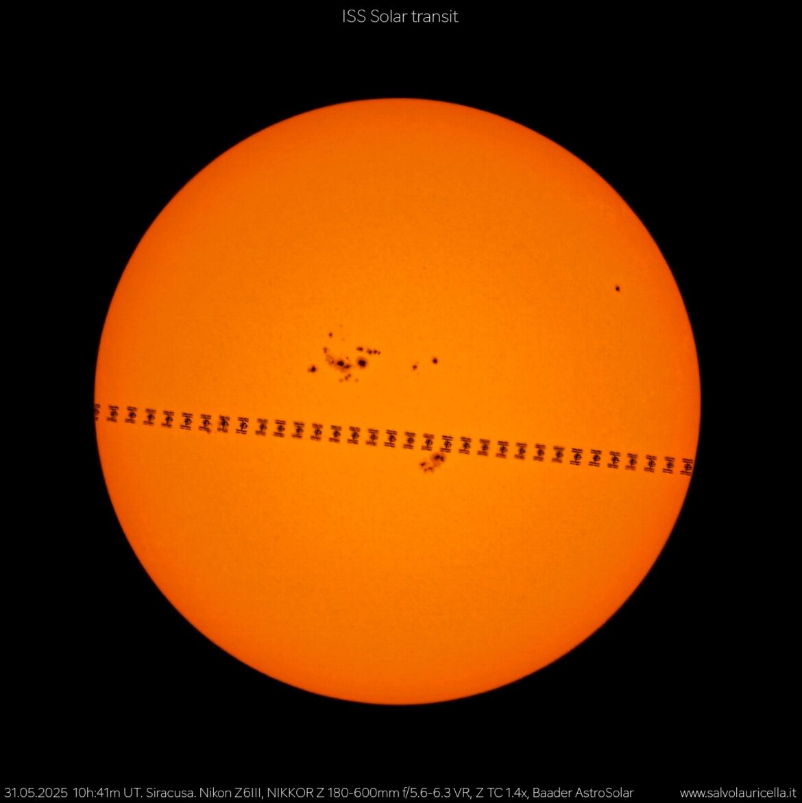 Foto di Salvo Lauricella: La Stazione Spaziale Internazionale (ISS) transita sul Sole