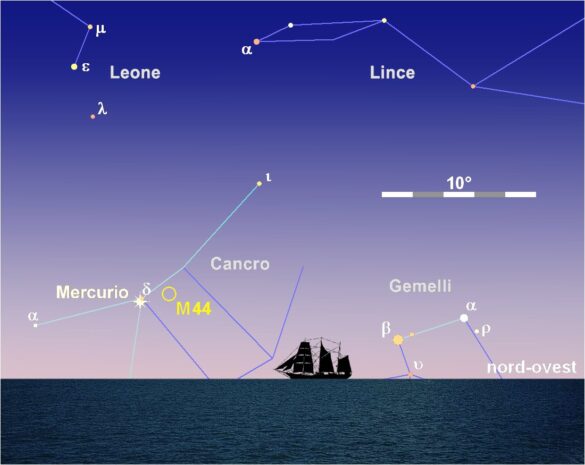 4 LUGLIO: MERCURIO VISIBILE AL TRAMONTO CON DELTA CANCRI