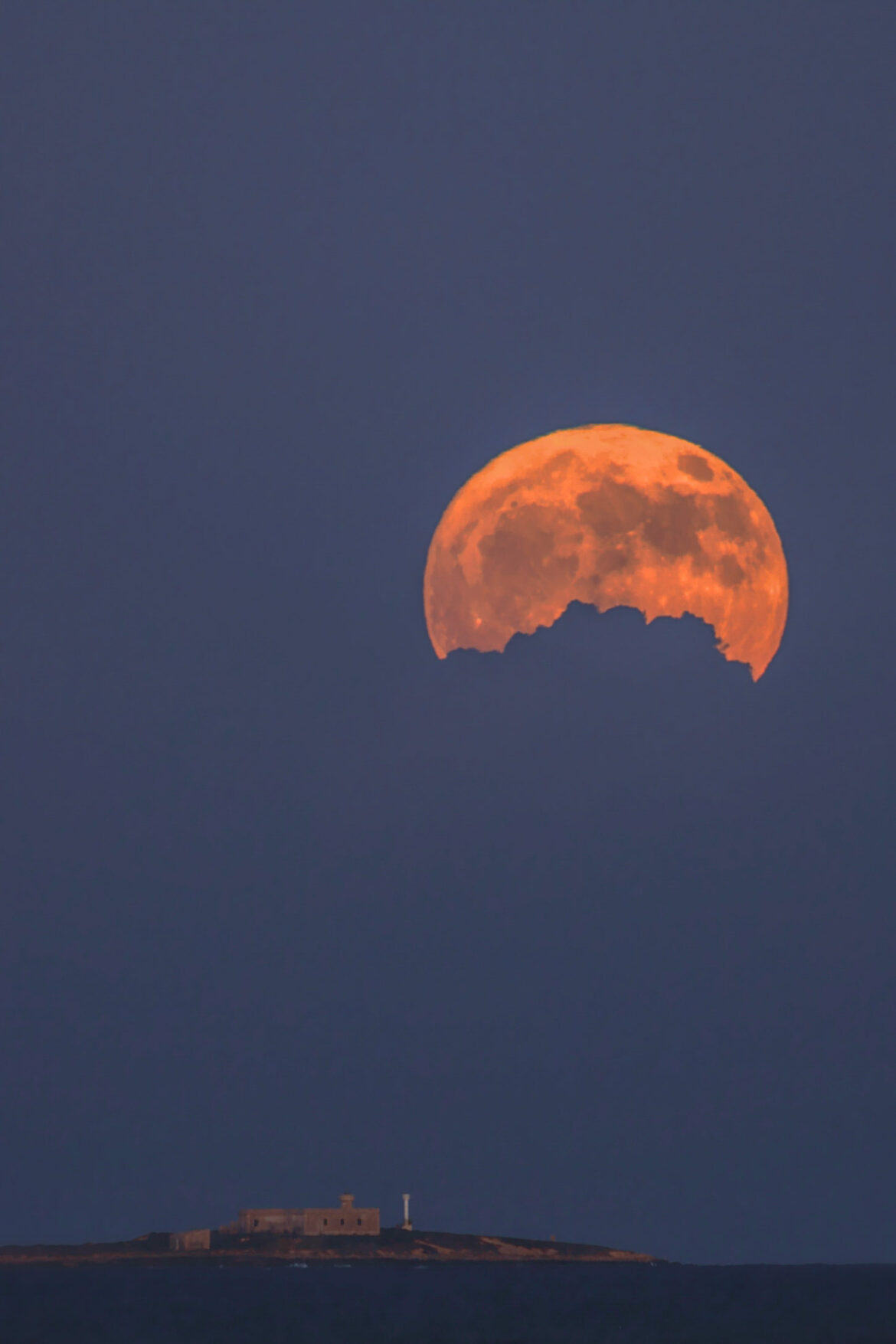 Foto di GIOVANNI PASSALACQUA: luna del cervo che sorge sopra il faro di Isola delle Correnti (1° scatto)