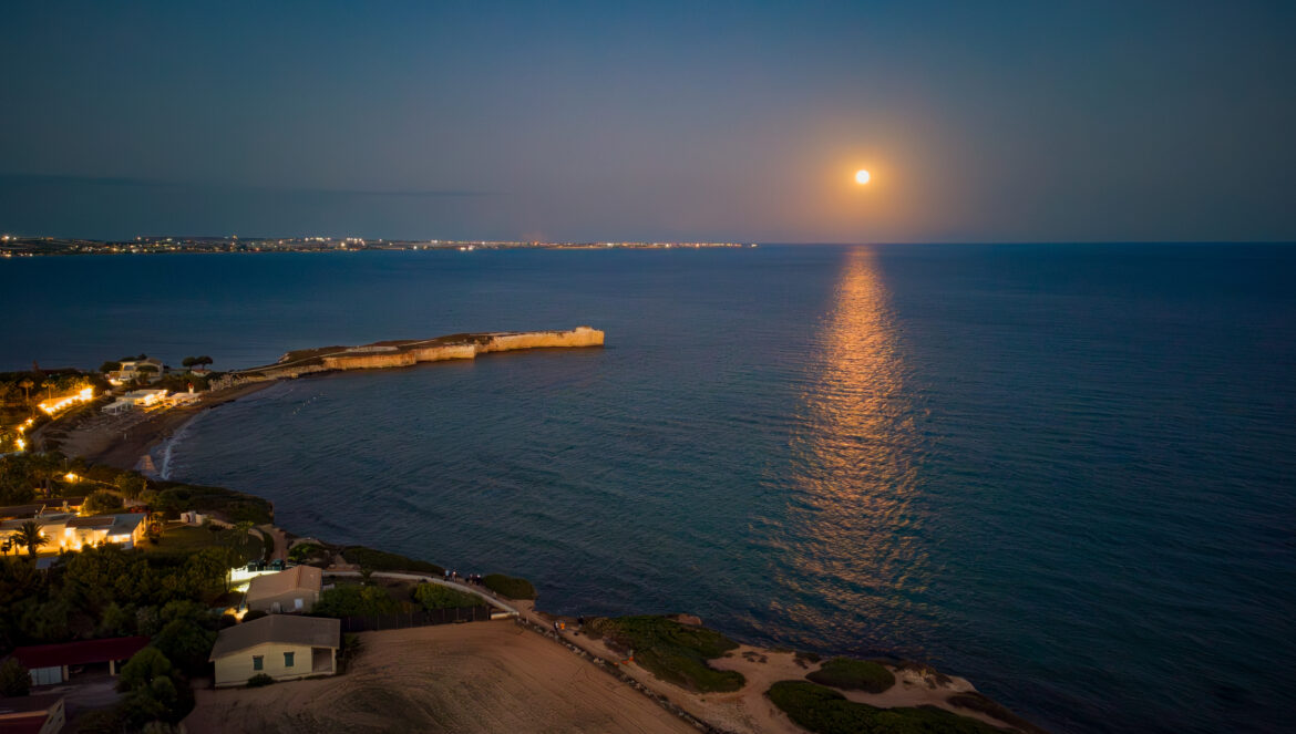 Foto di Salvo Lauricella: La luna piena si riflette sul mare di Punta Castellazzo