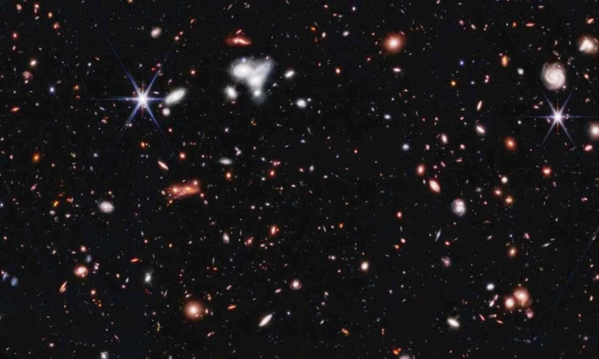In apertura, una ripresa del James Webb Telescope che mostra galassie e buchi neri lontanissimi, esistiti quando l’Universo aveva meno di un miliardo di anni