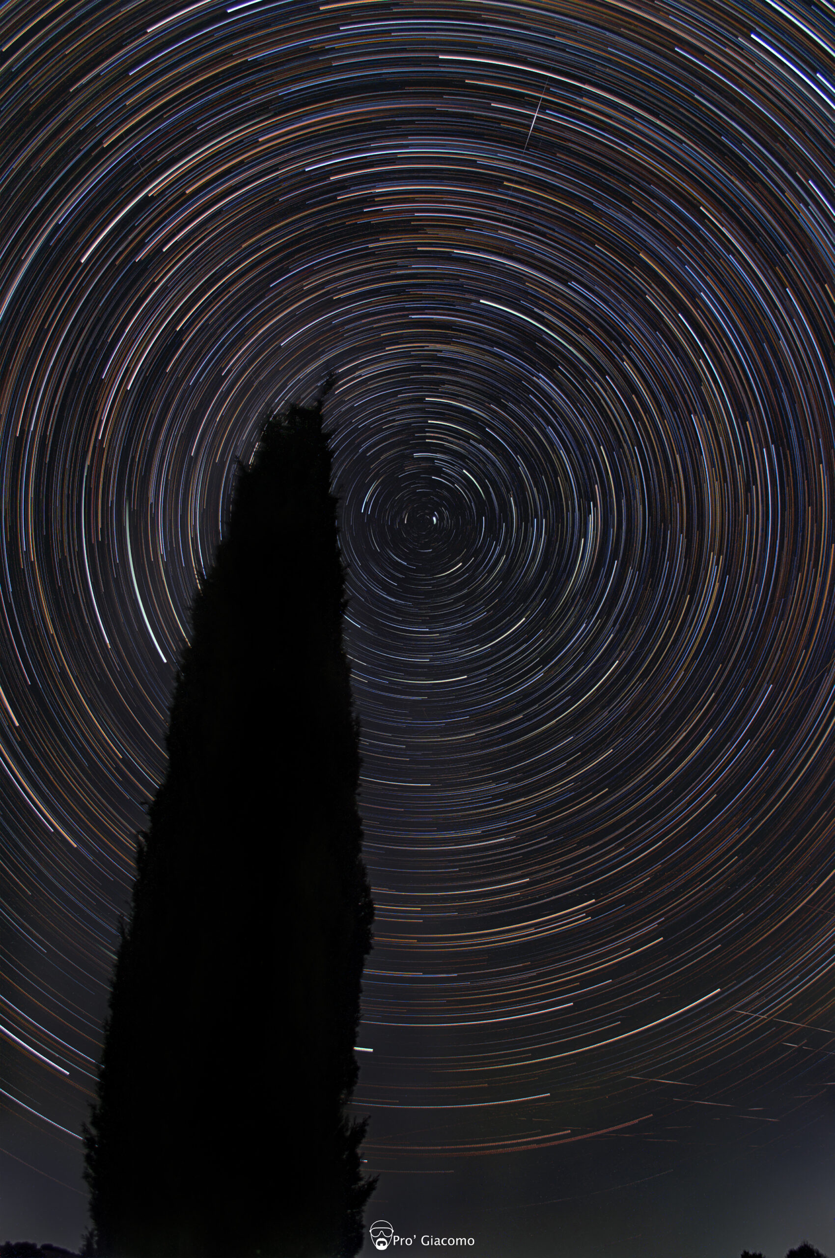 La tecnica atrofotografica dello Startrail rende percepibile la rotazione della Terra attorno al proprio asse.