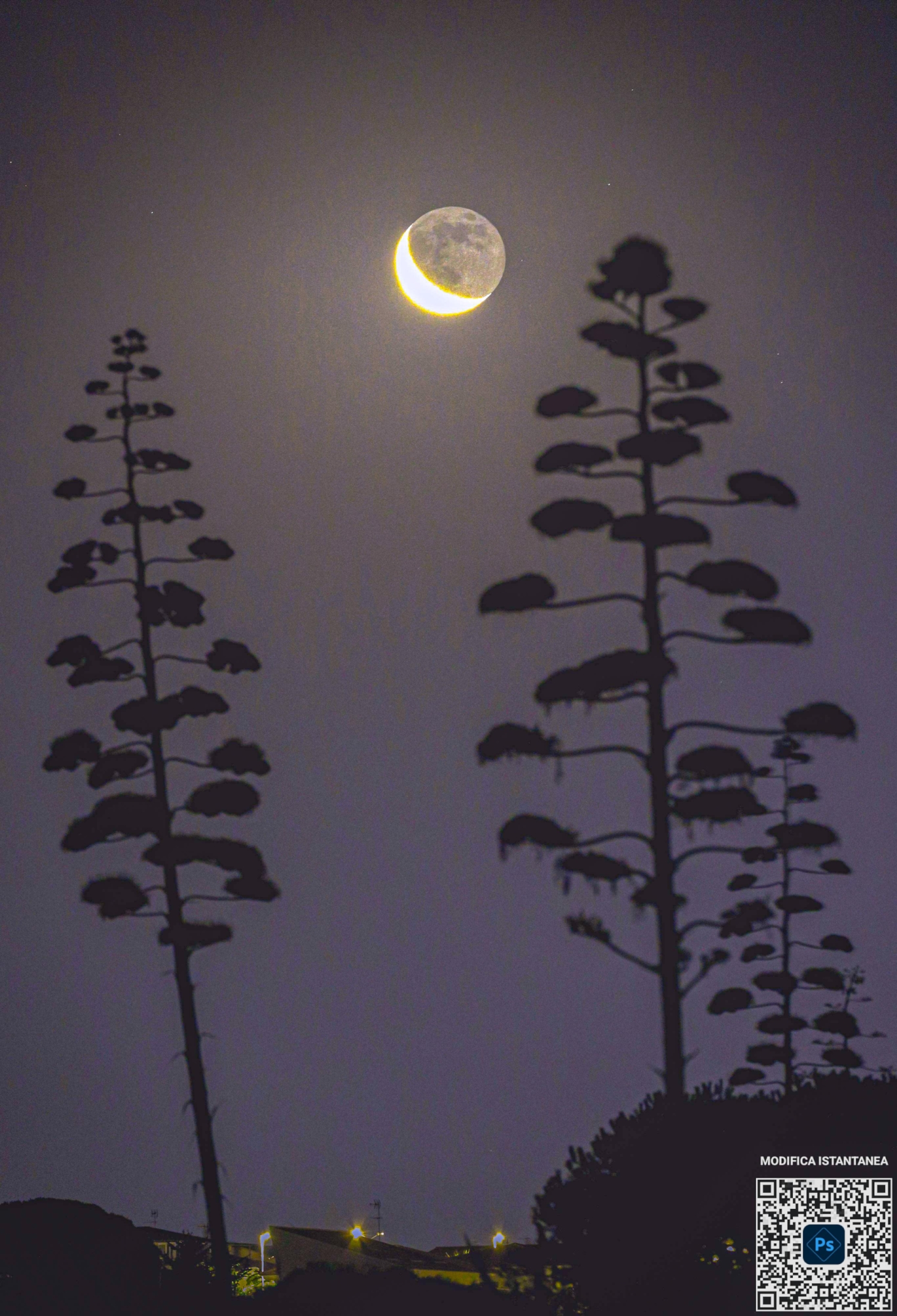 Foto di GIOVANNI PASSALACQUA: Luna calante che sorge sopra le agave di Sicilia