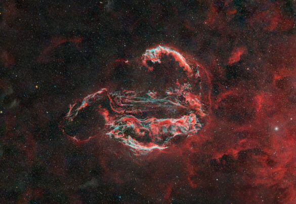 Conosciuta anche come Nebulosa Velo, è una vasta nebulosa diffusa visibile nella costellazione del Cigno, formata dai resti di una supernova esplosa tra 10.000 e 20.000 anni fa. Si estende per circa 3 gradi nel cielo, un’area pari a 36 lune piene, è situata nella parte sudorientale della costellazione e dista circa 2.500 anni luce dalla Terra.