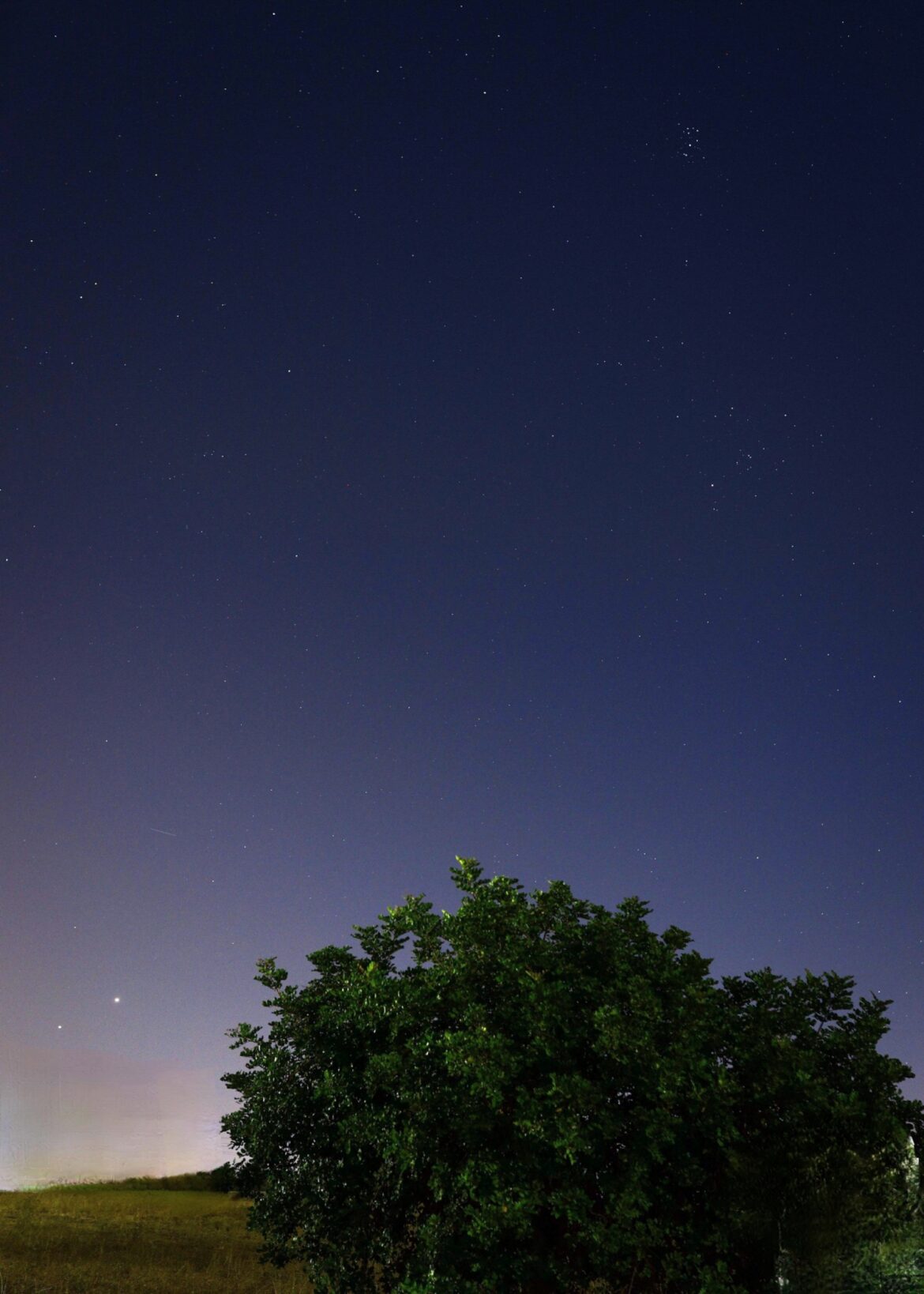 In questo scatto si può vedere bene tutta l’angolazione delle Pleiadi in alto, costellazione del toro al centro,