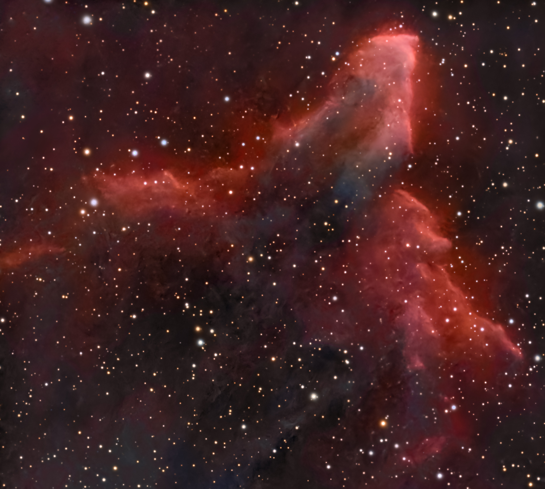 La nebulosa sta lentamente dissolvendosi sotto l’influsso del violento vento stellare emesso da γ Cassiopeiae.