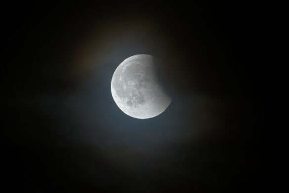 Eclisse di Luna pochi minuti prima di uscire dall’ombra della Terra, qualche velatura da nuvole; ripresa alla Colma di Sormano (CO) il 7/9/2025 su montatura equatoriale, doppia esposizione 1/640s e 1/25s, f/5.6, ISO400, F=400mm.