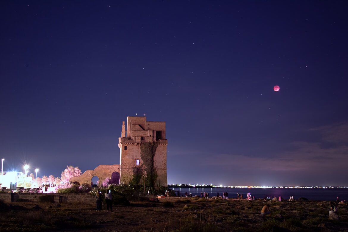 Il meteo non è stato del tutto favorevole, infatti la Luna è sorta tra la foschia e nuvole rendendo impossibile riprendere l’evento celeste sino a quando non si è alzata un po’ di più sull’orizzonte.