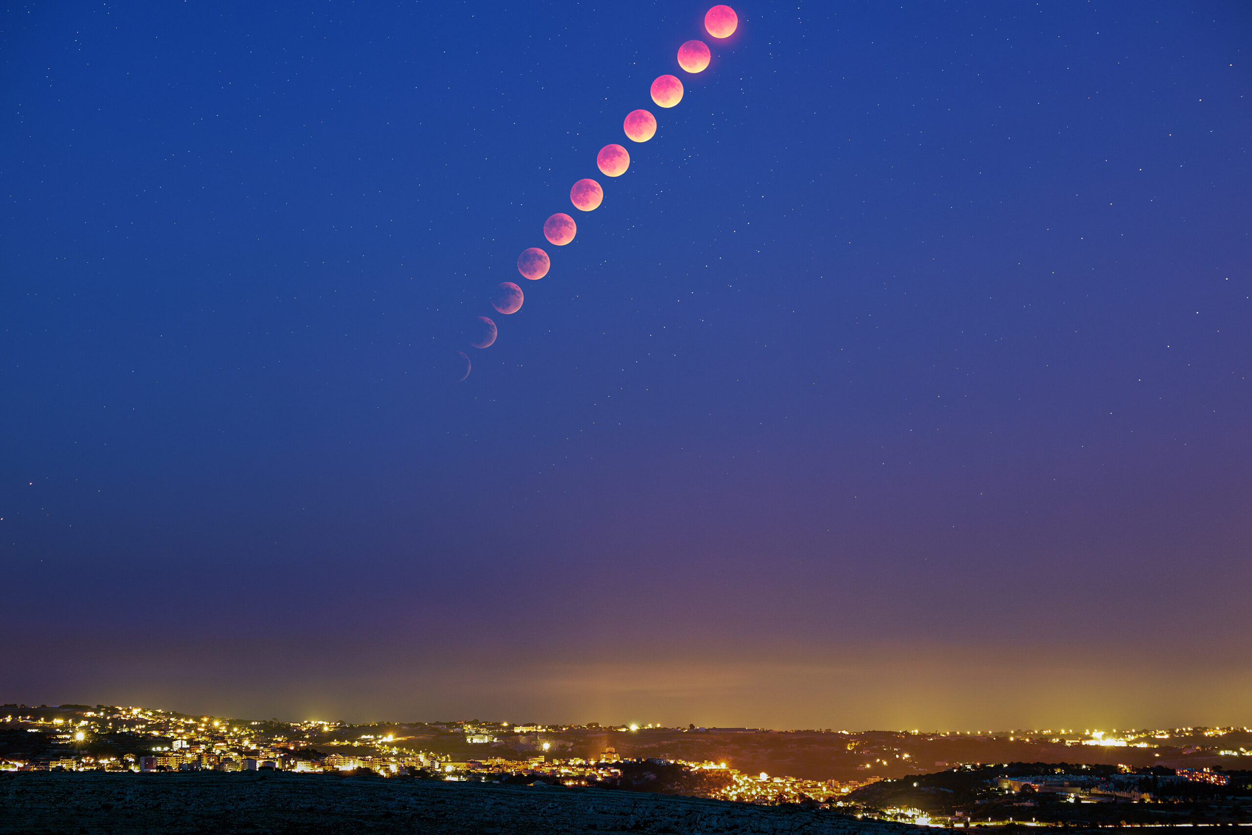 Foto di GIANNI TUMINO: LA LUNA ECLISSATA SORGE SU MODICA (RG)
