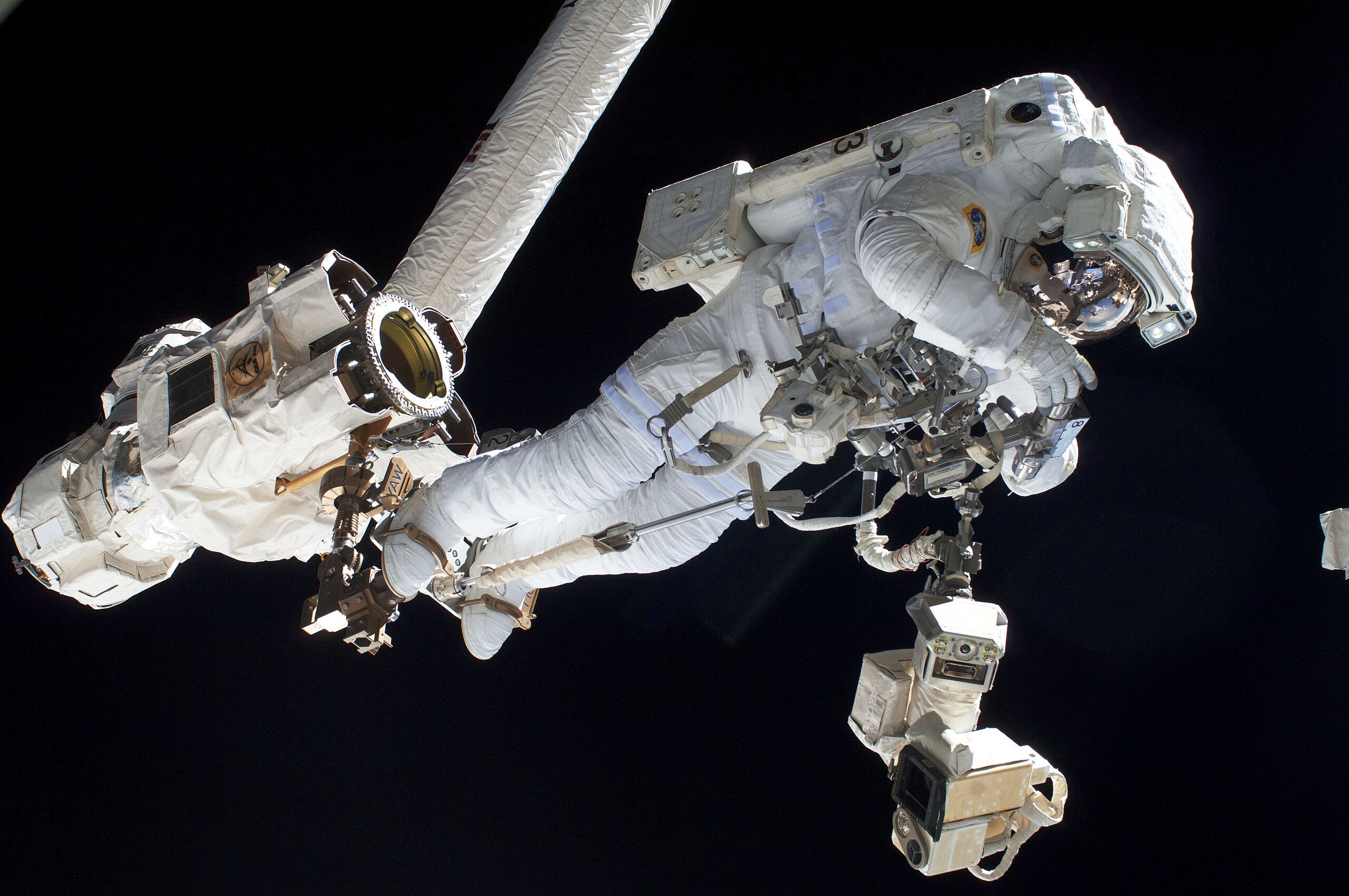 In figura, l’astronauta italiano Luca Parmitano dell’Agenzia spaziale europea impegnato in una attività extraveicolare all’esterno della Stazione spaziale internazionale.