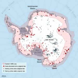 Gli autori dello studio, utilizzando le informazioni raccolte da CryoSat dal 2010 al 2020, hanno identificato 85 nuovi laghi subglaciali, situati a profondità di diversi chilometri sotto la superficie ghiacciata dell’Antartide.