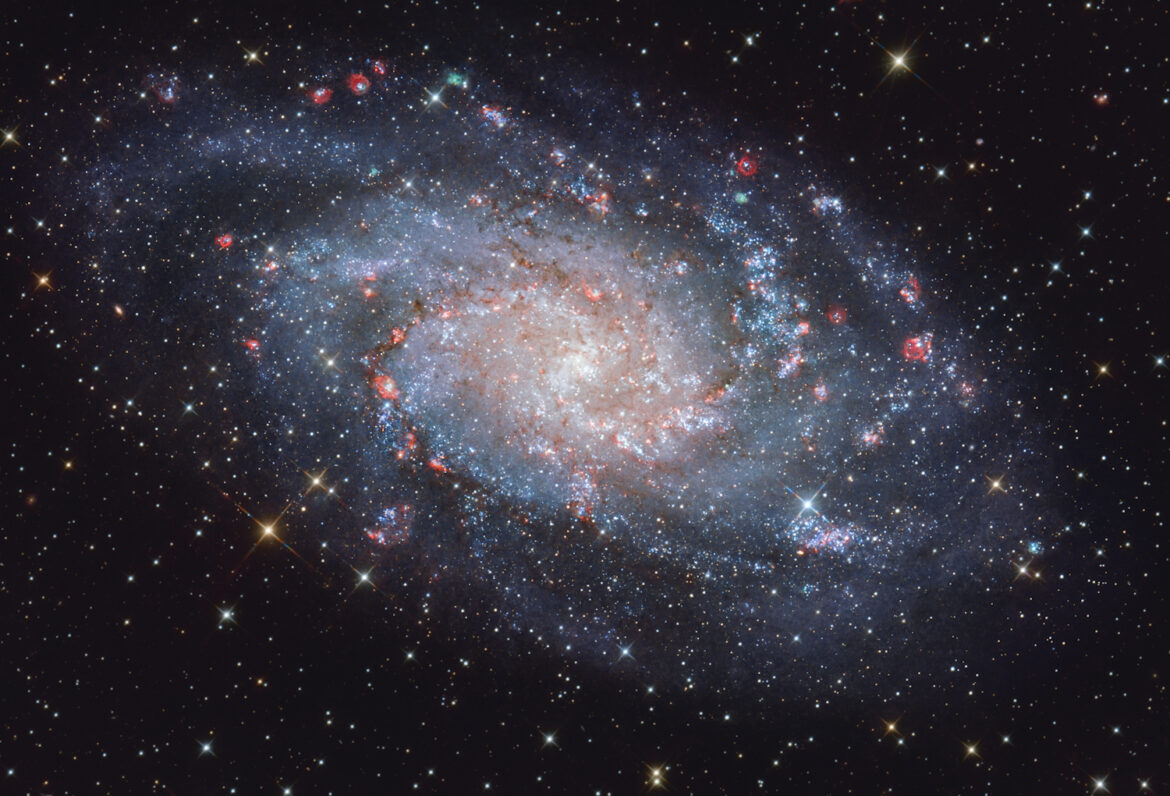 Questa è M33, conosciuta anche come Galassia del Triangolo, una delle nostre vicine galattiche più spettacolari. Si trova a circa 3 milioni di anni luce da noi ed è parte del Gruppo Locale, insieme alla Via Lattea e ad Andromeda.
