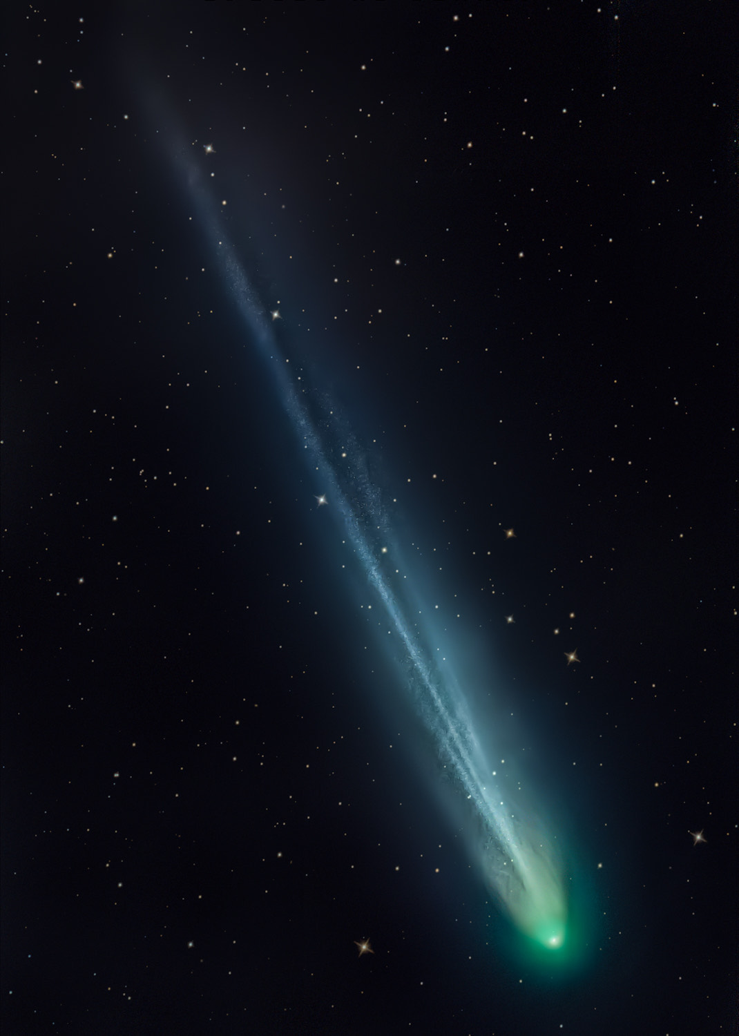 Note: Questa cometa è stata ripresa nel cuore della notte, il 12 ottobre, mentre attraversava la zona dell’Orsa Maggiore. Ancora debole ma già promettente, con una coda tenue e un nucleo verdastro, segno della presenza di gas come il carbonio