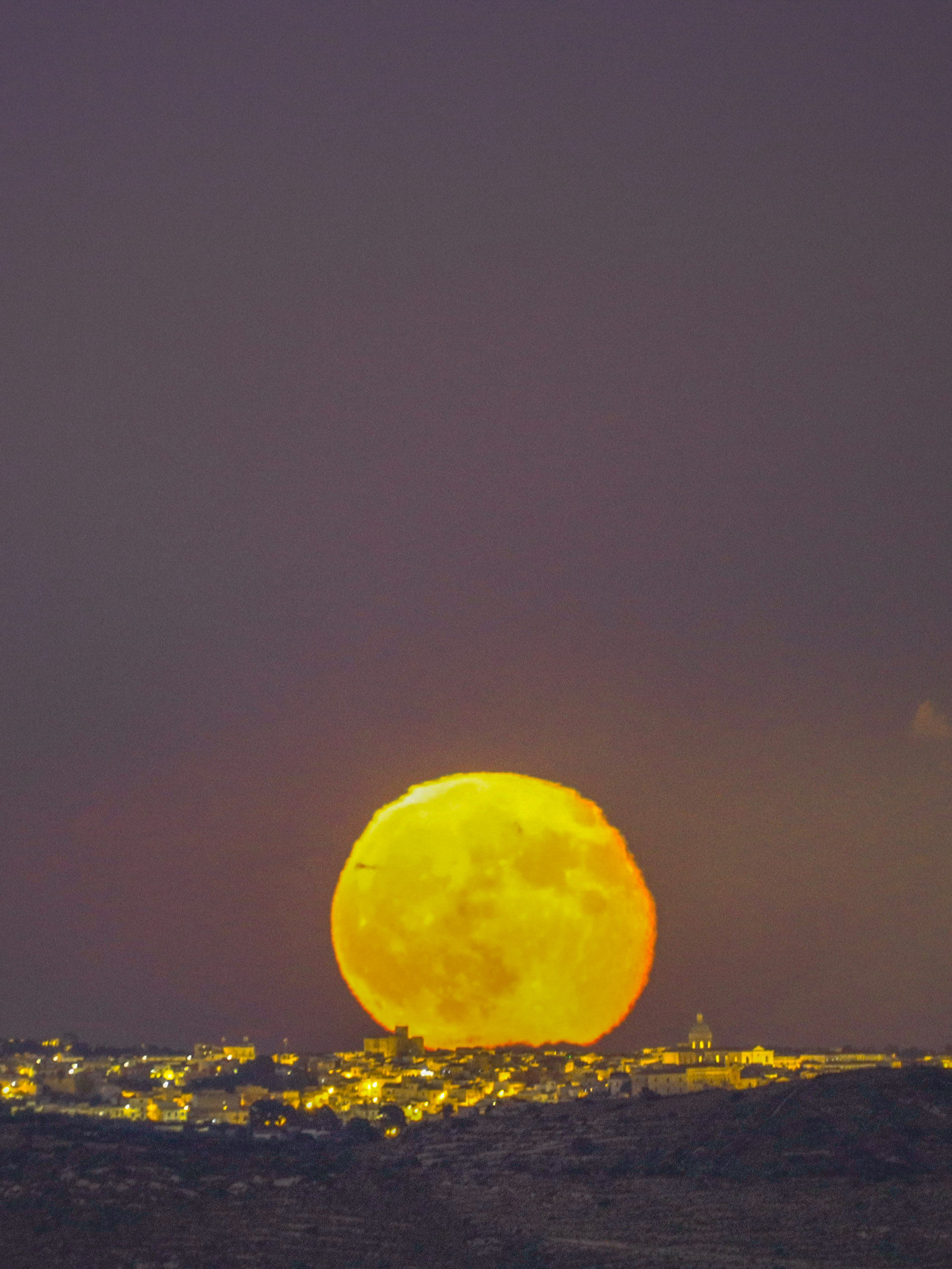 Foto di GIOVANNI PASSALACQUA: Luna piena sorge allineata sulla cattedrale di San Nicolò