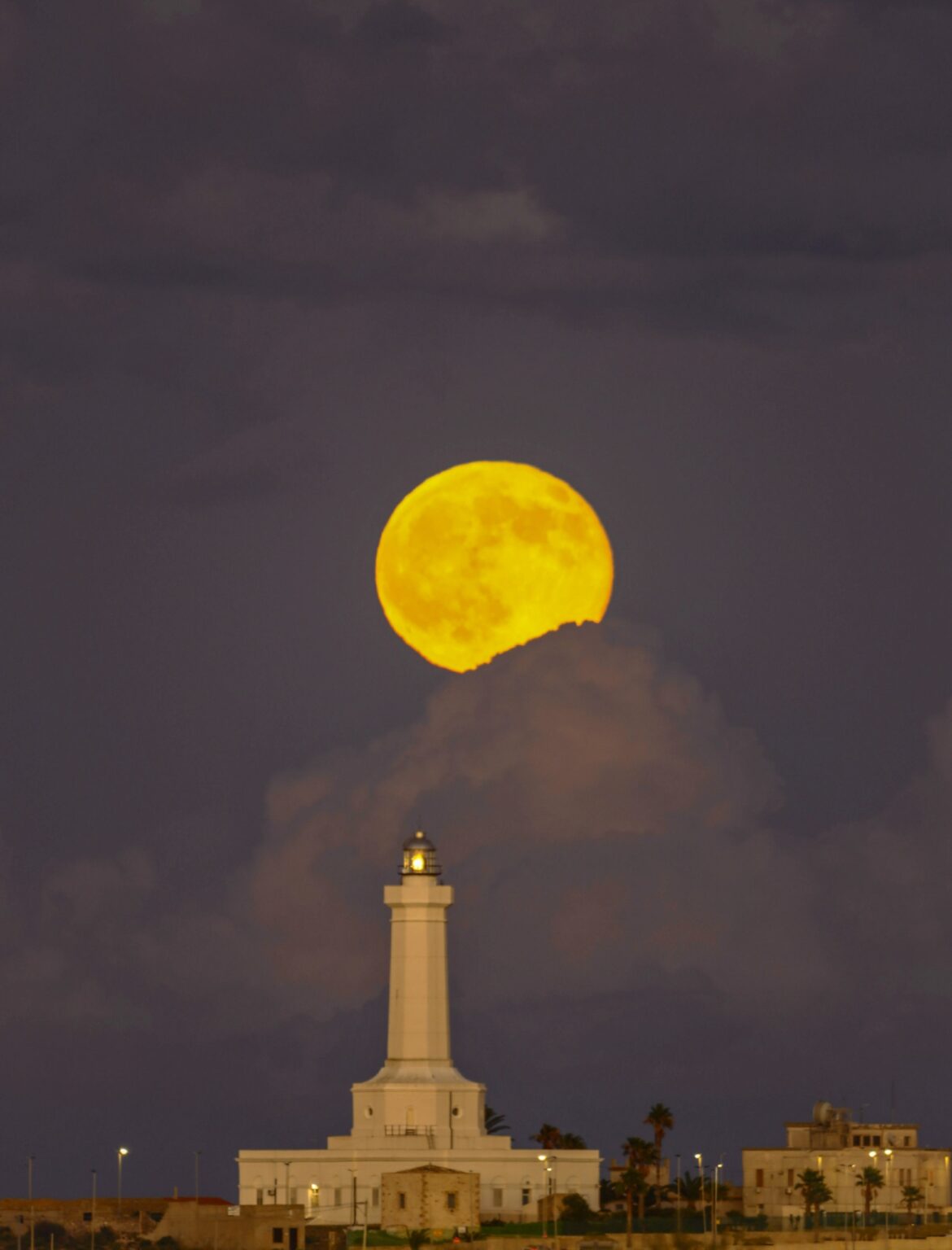 Foto di GIOVANNI PASSALACQUA: Passaggio della Luna alla minima distanza dalla Terra stimata sui 360.000 km, contro i 384 000 km – Luna piena che sorge sopra il faro di Portopalo