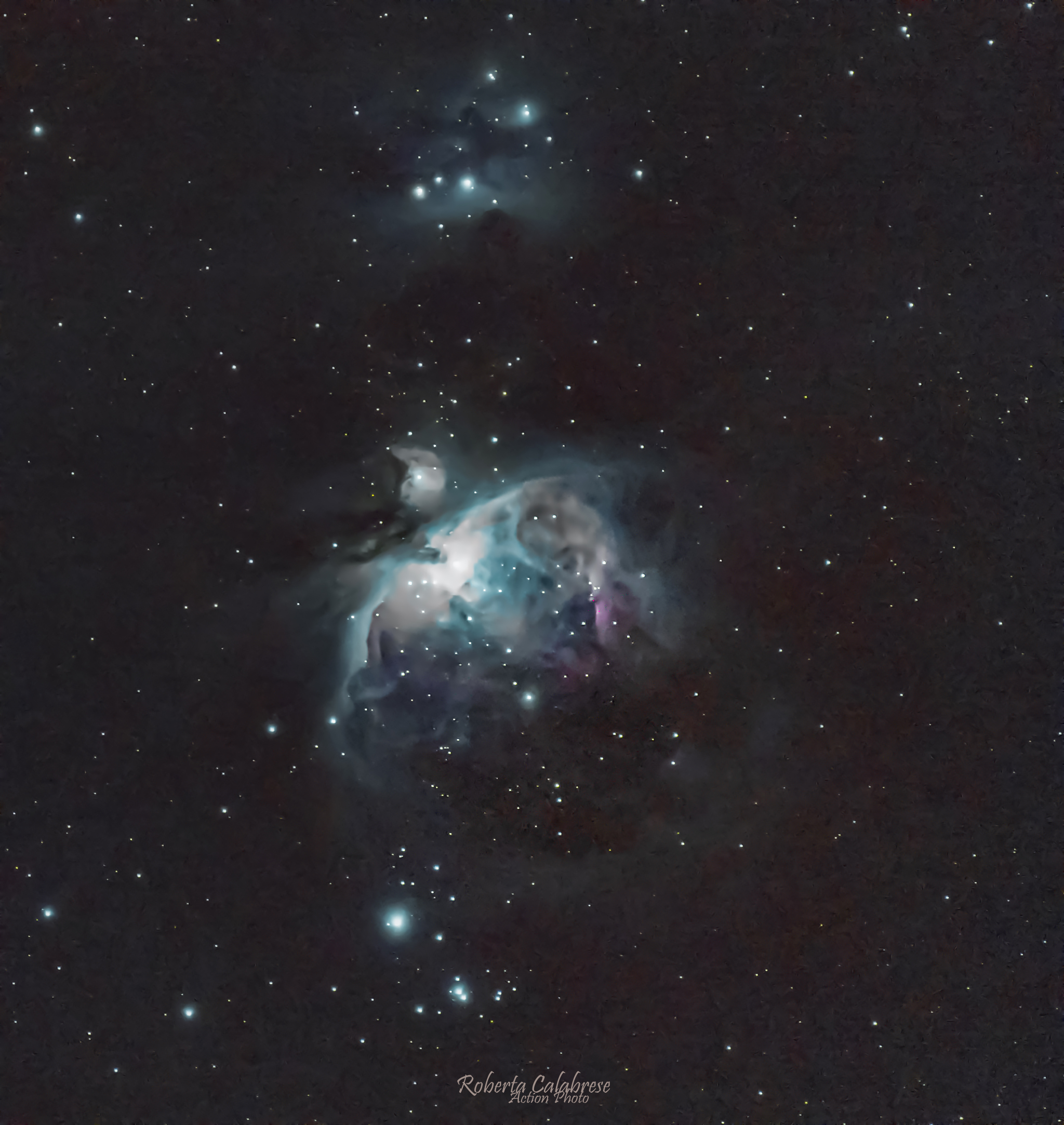 Great Orion Nebula M42 or Messier 42, is one of the brightest diffuse nebulae in the night sky, recognizable to the naked eye, it is located south of the famous asterisk of the Orion Belt at the center of the Sword of Orion. Shot made on 10/17/2025 H 5:30 with: Nikon Z6II _ NikkorZ180-600f/5.6-6.3 VR @600mm f/6.3 iso 800 0.4 sec 154 Lights + Dark + Bias + Flat pose not Astroinseguite processing Siril + Photoshop
