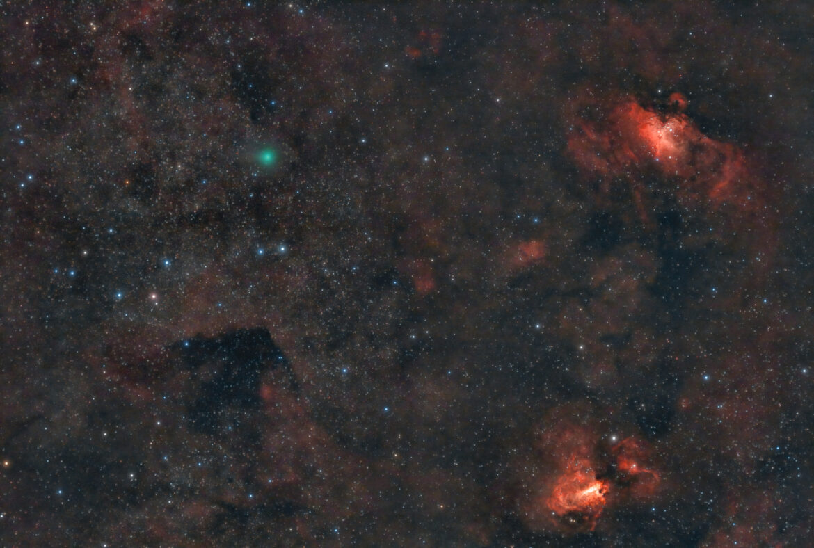 Foto di Cristina Cellini: Cometa C/2025 R2 Swan con B312, M16 e M17