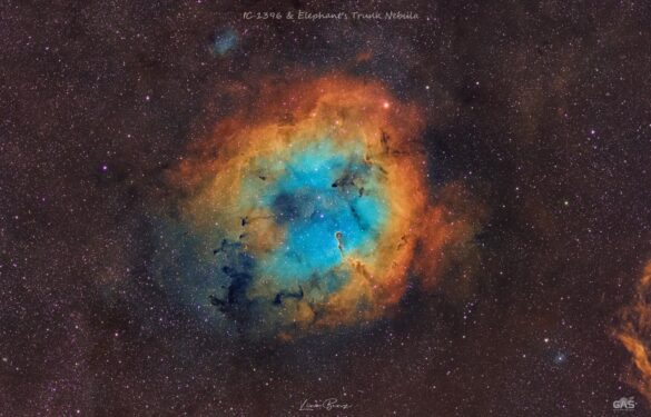 IC 1396 è un ammasso aperto sparso associato a una grande nebulosa diffusa, visibile nella costellazione settentrionale di Cefeo. Si trova in un tratto della Via Lattea parzialmente oscurato da dense nebulose oscure, a circa 3.000 anni luce di distanza. Vicino al centro della nebulosa si trova la famosa struttura nota come Proboscide dell’Elefante (vdB 142).