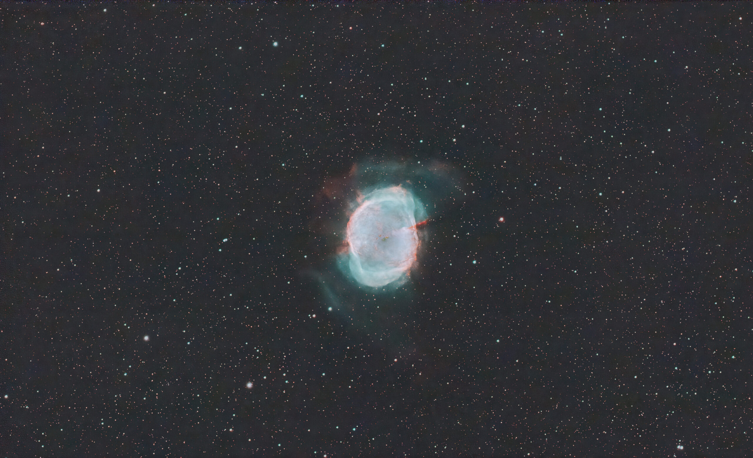 Per l’occasione, ho deciso di fare una prova sulla bellissima M27, anche nota come Dumbbell Nebula o Nebulosa Manubrio, in Italiano. Ho utilizzato un filtro L-Extreme, per la ripresa in banda stretta del soggetto. Avrei voluto eseguire una seconda sessione in banda larga per le stelle, ma non ne ho avuto poi modo.